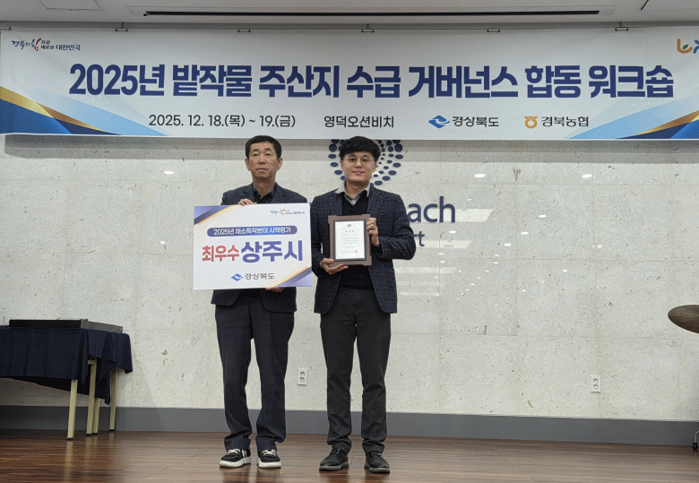 상주시는 지난 18일, 경상북도에서 실시한‘2025년 채소특작분야 시책평가’에서 6년 연속 최우수상을 수상하는 영예를 안았다. 채소특작분야 시책평가는 국·도비 예산 확보 및 집행 실적, 국·도비 공모사업 확보 노력, 정부 및 경북도 정책 참여 노력, 시군의 자체사업 발굴 여부 등 채소특작분야 관련 정책의 추진성과를 종합적으로 심사하여 우수 지자체를 선정하는 평가이다. 상주시는 올해 채소특작분야 사업에 약 28억원의 예산편성, 2026년 공모사업 32억5000만원 확보하는 등, 자체사업 추진 실적 등의 성과를 인정받아 우수 지자체로 선정됐다. 특히 올해 채소 시설하우스 연질필름 교체사업 예산 3억원을 신규로 편성·지원해 농가 경영안정 도모 및 농산물 생산성 향상을 위해 노력하고 있다. 6년 연속 수상이라는 이번 성과로 인해 상주시가 어려운 여건 속에서도 채소특작분야 농업인의 소득증진 및 경쟁력 강화를 위해 노력한 것이 대외적으로 인정받고 상주시 농업의 위상을 드높이는 계기가 됐다. 상주시 관계자는 “이번 수상은 상주시와 채소, 특용작물 재배 농업인들이 함께 만들어낸 결과이며, 앞으로도 상주시 농업의 위상을 더욱더 높이고 농업인의 소득증대 및 채소특작분야 산업의 발전을 위해 최선을 다하겠다”고 했다.