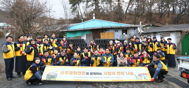 천주평화연합은 세일여행사의 후원으로 자원봉사 애원과 함께 지난 20일 서울 성북구 정릉3동 일대에서 ‘2025 사랑의 연탄나눔 봉사활동’을 개최했다. 이번 행사는 지역사회 취약계층의 따뜻한 겨울나기를 지원하기 위한 나눔 실천의 일환으로 마련됐다.김석진 천주평화연합 회장은 인사말씀을 통해 “연탄 한 장의 무게는 3.65kg에 불과하지만, 이 작은 연탄으로 에너지 취약계층이 365일 따뜻한 생활을 이어갈 수 있기를 바란다”며 “연탄이 자신을 태워 세상을 따뜻하게 하듯 우리의 봉사활동 또한 이웃을 위해 자신을 내어주는 나눔이 되길 기대한다”고 밝혔다.