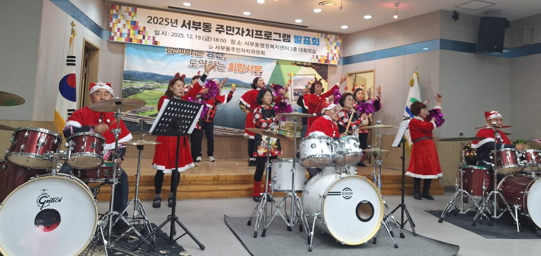 영천시 서부동 주민자치위원회는 지난 19일 서부동행정복지센터에서 주민자치 프로그램 수강생 발표회를 개최했다. 이번 발표회에서는 아랑고고장구, 드럼, 라인댄스, 통기타 수강생들이 그동안 갈고닦은 실력을 선보이며 함께한 노력과 성취를 공유하는 의미 있는 시간을 가졌다.수강생들의 열정적인 공연은 참석자들의 큰 호응을 얻었으며 오는 31일까지 서부동행정복지센터 청사 내에서 진행되는 서예, 민화, 한국화 수강생들의 작품 전시회 또한 관람객들의 눈길을 사로잡고 있다.최부봉 주민자치위원장은 “프로그램 강사와 수강생 여러분의 열정과 노력 덕분에 이번 발표회와 전시회가 성공리에 진행될 수 있었다”며 감사의 말을 전했다.조영진 서부동장은 “주민자치위원회와 강사, 수강생 여러분, 그리고 관심을 갖고 참석해 주신 모든 분들께 깊이 감사드리며 앞으로도 지역 주민의 문화·여가 활동 활성화를 위해 노력하겠다”고 밝혔다.
