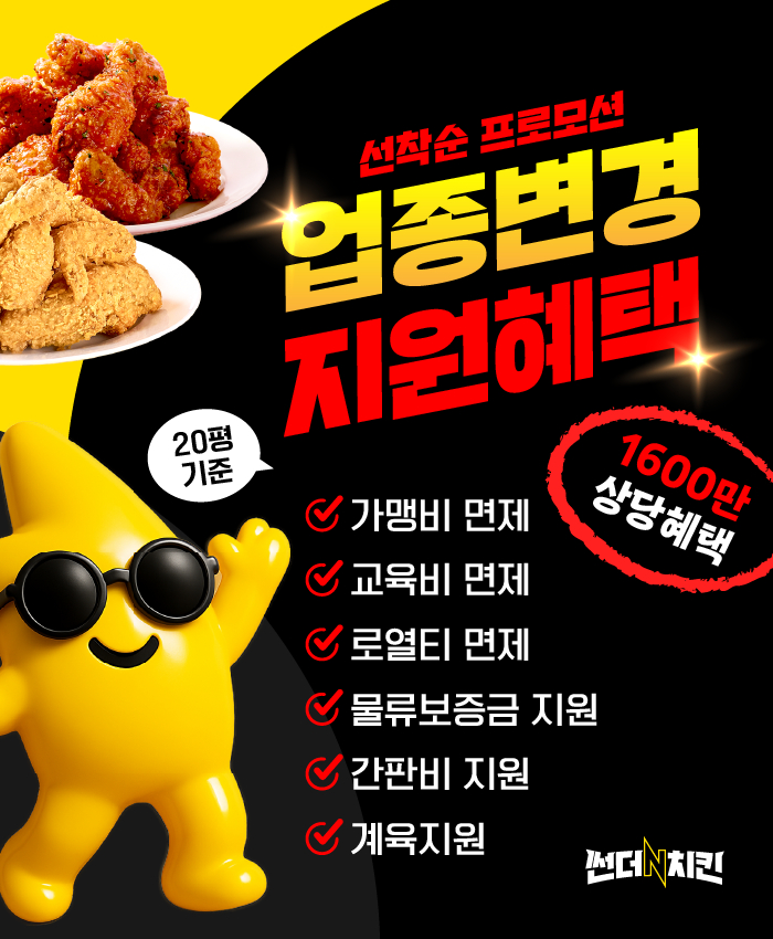 국내 치킨 프랜차이즈 ㈜썬더치킨이 업종변경을 고려하는 창업자를 대상으로 초기 비용 부담을 낮춘 지원 프로그램을 진행한다고 밝혔다.이번 프로그램은 가맹비·교육비·로열티 등 약 1,000만 원 상당의 비용을 전액 면제하는 것이 핵심 혜택이다. 회사 측은 해당 지원이 업종변경 창업자뿐 아니라 신규 창업자에게도 동일하게 적용된다고 설명했다.이와 함께 물류보증금 300만 원, 간판비 200만 원 지원, 계육 지원 등 초기 정착을 돕기 위한 추가 혜택도 포함됐다. 모든 비용 산정 기준은 20평 규모 매장을 기준으로 한다. 회사 측은 “업종변경 과정에서 발생하는 초기 부담을 실질적으로 완화하기 위해 지원 범위를 확대했다”고 밝혔다.썬더치킨은 최근 세컨드 브랜드인 ‘옥계리감자치킨’을 함께 운영할 수 있다는 점도 업종변경 창업자의 선택지를 넓히는 요소라고 강조했다. 옥계리감자치킨은 순살치킨 전문 브랜드로, 대표 메뉴인 감자치킨을 비롯해 다양한 토핑과 소스를 조합해 개인 취향에 맞춘 커스터마이징 메뉴 구성이 가능한 것이 특징이다. 회사 측은 두 브랜드를 동시에 운영할 경우 단일 브랜드 대비 메뉴 경쟁력이 강화되고, 추가 매출 창출에도 도움이 될 수 있다고 설명했다.㈜썬더치킨 관계자는 “외식업 경기 침체로 업종변경을 고민하는 창업자들이 늘고 있는 만큼, 실질적인 비용 절감과 수익성 강화를 동시에 고려한 지원 프로그램을 마련했다”며 “썬더치킨의 안정적인 운영 시스템과 옥계리감자치킨의 차별화된 메뉴 구성이 결합된 복합 운영 모델은 매출 다각화 측면에서도 경쟁력이 있다”고 말했다.한편, 썬더치킨은 향후에도 업종전환 창업자를 위한 다양한 지원 프로그램을 지속적으로 운영할 계획이라고 밝혔다.