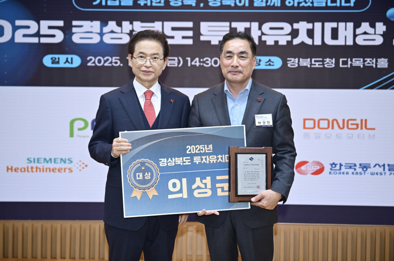 의성군은 지난 19일 경북도청에서 열린 ‘2025년 경상북도 투자유치대상’ 시상식에서 투자유치 활성화 성과를 인정받아 3년 연속 대상을 수상했다고 밝혔다.‘경상북도 투자유치 대상’은 도내 22개 시·군을 대상으로 ▲투자유치 업무협약(MOU) 체결 실적 ▲일자리 창출 실적 ▲투자유치 특수시책 발굴 및 기반 조성 노력 등을 종합 평가해 한 해 동안 지역경제 활성화에 두드러진 성과를 거둔 자치단체에 수여하는 상이다.의성군은 미래 성장산업 기반 구축을 목표로 바이오산업 육성에 전력적으로 집중해 왔다.