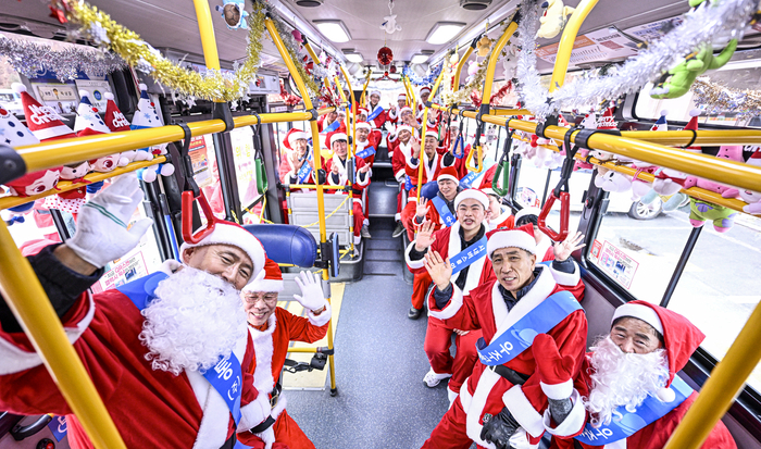 23일 오후 대구 북구 관음로에 위치한 우주교통 차고지에서 '성탄절 산타와 함께하는 시내버스' 발대식이 열렸다. 우주교통 제공