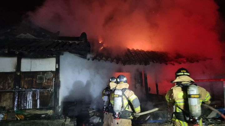 경북소방본부 등에 따르면 24일 오전 0시 35분쯤 경북 안동시 와룡면 이하리의 한 단독주택에서 불이 났다.