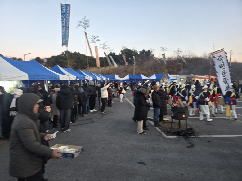 울진군 죽변면 청년회(회장 문정철)는 1일 오전 6시부터 2026 병오년 해돋이를 보기 위해 죽변면을 찾은 관광객들이 '새해맞이 떡국·커피 나눔행사'를 가졌다.