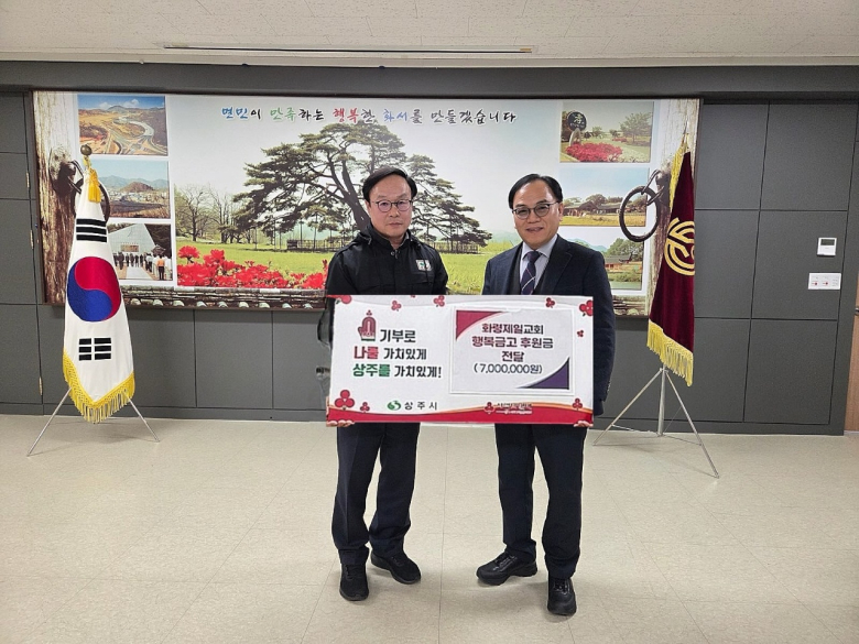 상주시 화서면의 화령제일교회는 지난 5일 화서면행정복지센터를 방문해 지역 내 어려운 이웃을 돕기 위한 성금 700만원을 화서면 행복금고에 기부했다. 이번에 기탁한 성금은 화서면 지역사회보장협의체에서 추진하는 화서면 행복금고 사업을 통해 복지사각지대에 놓인 저소득 가구 및 위기가구 지원에 사용될 예정이다. 심오섭 목사는 “지역사회와 함께하는 교회로서 어려운 이웃들에게 조금이나마 도움이 되기를 바라는 마음으로 성금을 전달하게 됐다”며 “앞으로도 지속적인 나눔을 통해 이웃사랑을 실천하겠다”고 했다. 공형석 화서면장은 “지역 주민들을 위해 따뜻한 나눔을 실천해 주신 화령제일교회에 깊이 감사드린다”며 “기탁해 주신 소중한 성금은 꼭 필요한 이웃들에게 투명하고 의미 있게 전달하겠다”고 했다.