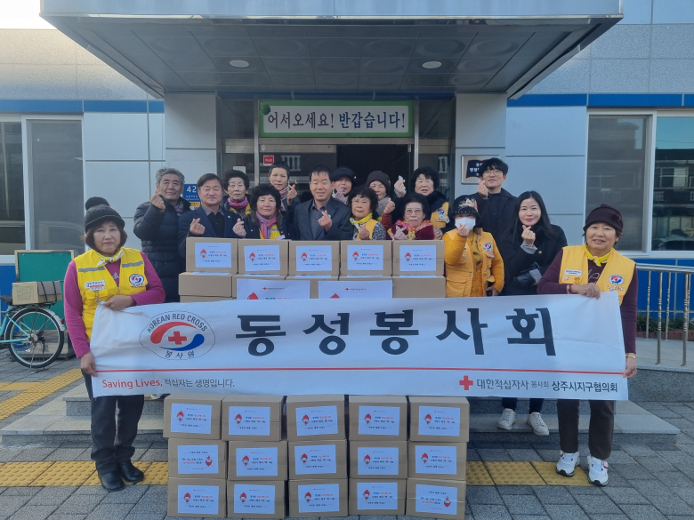 상주시 동성동행정복지센터에서는 지난 8일 동성동 적십자봉사회에서 기탁한 떡국떡을 어려운 이웃들에게 전달하는 ‘사랑의 떡국 떡 나눔 행사’를 가졌다. 이번 행사는 적십자봉사회 회원들이 손수 정성을 담아 마련한 떡국 떡(100봉지)을 병오년 새해에 이웃의 관심과 도움이 필요한 지역 독거노인 및 장애인 등 저소득층 100가구에 전달했다. 김옥자 적십자봉사회장은 “작은 정성이지만 이웃들에게 따뜻한 정을 나누게 되어 기쁘다”며 “새해 따뜻한 떡국 한 그릇이 우리 이웃의 든든한 한끼의 식사가 되어 마음까지 훈훈해 지기를 바란다”고 했다. 이하국 동성동장은 “추운 겨울철에 따뜻한 마음을 나누어 주신 적십자봉사회에 깊이 감사드린다”며 “작고 소중한 나눔들이 모여서 지역사회가 더욱 훈훈한 새해가 되기를 바란다”고 했다.