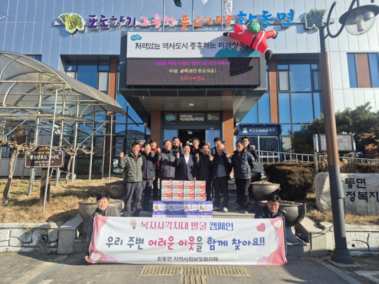 상주시 화동면지역사회보장협의체는 ‘복지 사각지대 zero’ 프로젝트의 일환으로 화동면 이장협의회 및 삼둥이농장과 함께 ‘How 두유 do?’사업을 추진했다. ‘How 두유 do?’ 사업은 지역사회보장협의체와 이장협의회가 협업하여 복지사각지대 발굴의 날을 운영하고 화동면 삼둥이농장에서 직접 재배한 사과와 배로 정성껏 만든 과일즙을 후원해 복지사각지대에 놓인 이웃들에게 전달하기 위한 화동면지역사회보장협의체의 특화사업이다. 협의체 위원 및 이장은 상·하반기 16가구를 직접 가정 방문해 후원물품을 전달하고 위기 징후를 살피며 어려운 이웃 발견 시 제보 방법에 대한 정보를 제공함으로써 취약계층의 건강을 증진하고 주변의 숨은 위기가구를 발굴·홍보하는 활동을 진행한다. 김상식 화동면장은 “삼둥이농장에서 정성껏 재배한 농산물로 만든 즙을 후원해 주셔서 진심으로 감사드리며 본 사업을 통해 촘촘한 안전망을 구축하여 다 함께 잘 사는 화동면이 될 수 있도록 적극 노력하겠다”고 했다.