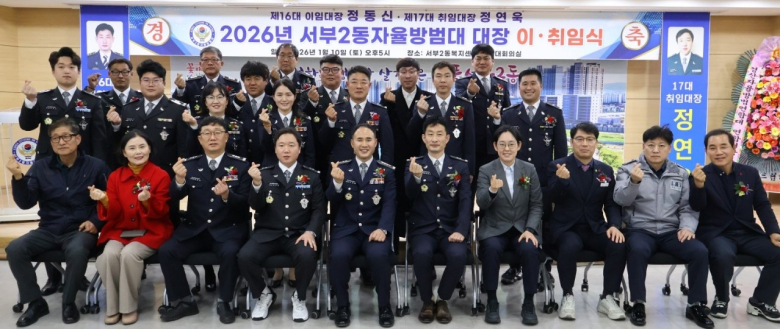 경산시 서부2동 자율방범대는 지난 10일 서부2동행정복지센터에서 자율방범대장 이‧취임식을 개최했다.신일키즈태권클럽의 깜찍한 태권무로 시작된 이날 행사에는 국회의원, 시의원, 서부지구대장, 서부2동 단체장 등 주요 내빈들과 자율방범대원 등 100여 명이 참석해 자리를 빛냈다. 정연욱 신임 자율방범대장은 “막중한 책임감을 느끼며 대원들과 힘을 모아 더욱 안전하고 살기 좋은 서부 2동을 만들기 위해 최선을 다하겠다”는 포부를 전했다.특히 이날 행사에서는 서부 2동 자율방범대가 어려운 이웃을 돕기 위한 성금 100만 원을 기탁하며 지역사회 나눔 실천에도 앞장섰다. 기탁된 성금은 지역 저소득 취약계층을 위해 사용될 예정이다.