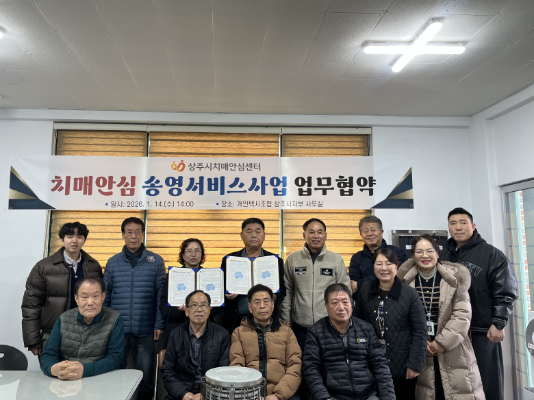 상주시치매안심센터는 지난 14일 경북개인택시운송사업조합 상주시지부와 ‘치매안심 송영서비스’ 운영을 위한 업무협약을 체결하고 치매어르신의 안전한 이동 지원을 위한 협력체계를 구축했다. 치매안심 송영서비스는 치매안심센터 프로그램에 참여하는 어르신을 대상으로 운영되며 이동에 어려움이 있는 대상자도 안전하게 센터를 이용할 수 있도록 돕는 사업이다. 보호자 동행 부담이 줄어 가족의 돌봄 부담 완화에도 긍정적인 효과를 보이고 있으며 치매관리 서비스 접근성을 높이고 사각지대 해소에 기여하고 있다. 2025년에는 치매환자 등 74명이 총 369회 서비스를 이용했으며 이동 문제로 프로그램 참여를 중단하던 사례를 줄이는 데 실질적인 역할을 했다. 치매안심센터는 2026년에도 서비스 운영을 통해 치매관리 참여율을 높이고 지속적인 사례 발굴에 나설 방침이다. 김민선 건강증진과장은 “안심 송영서비스는 치매어르신의 이동 문제를 해결해 돌봄 접근성을 높이는 중요한 수단”이라며 “앞으로도 지역 여건을 반영한 치매관리 정책으로 치매어르신과 가족이 체감할 수 있는 지원을 이어가겠다”고 했다.