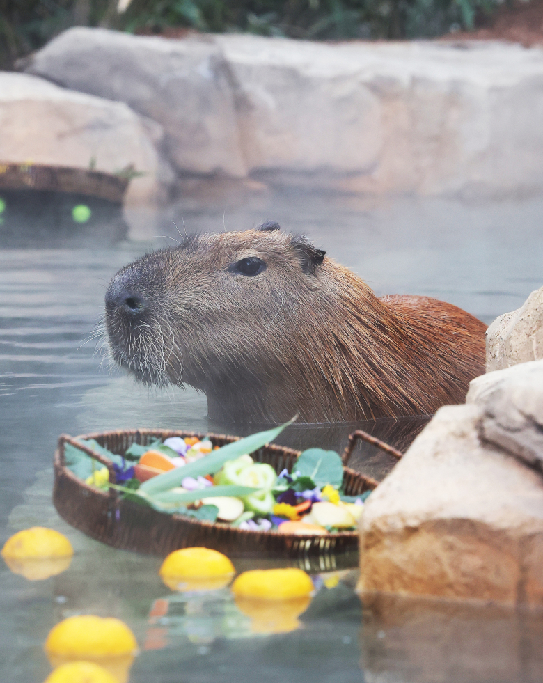 15일 경기도 용인시 에버랜드에서 카피바라가 따뜻한 물속에 들어가 있다. 연합