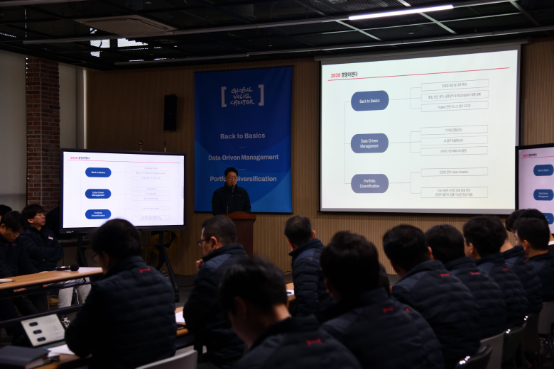 HS화성이 19일 오전 대구 본사 7층 컨퍼런스홀에서 전 임직원이 참석한 가운데 ‘2026년 경영전략회의’를 열고 올해 경영 방향과 중점 추진 전략을 공유했다.이번 회의에서 HS화성은 지난해 경영 성과를 점검하고, 대내외 불확실성이 지속되는 경영 환경 속에서 2026년을 대비한 핵심 전략으로 ▲기본과 내실 강화 ▲데이터 기반 경영 ▲사업 포트폴리오 다각화를 제시했다. 이를 통해 원가·자금 리스크를 체계적으로 관리하고 지속 가능한 수익 구조를 구축한다는 방침이다.HS화성은 2025년 한 해 동안 약 1조5000억 원 규모의 수주를 기록하며 창사 이래 최대 실적을 달성했다. 특히 서울과 수도권 주택·정비사업 시장에서 연이은 수주 성과를 거두며 브랜드 경쟁력과 시장 존재감을 확실히 각인시켰다는 평가다. 안양을 시작으로 서울 중랑구 면목본동 일대와 서초구 잠원한신타운, 성수동 신성연립 재건축 사업 등을 잇따라 수주했다.올해 수주 목표는 1조4000억 원으로 설정했다. 주택·건축 부문에서는 수도권을 중심으로 선별적이고 질적인 수주 전략을 이어가고 토목·환경 부문은 안정성과 수익성을 함께 고려한 사업 중심으로 추진할 계획이다. 또한 ERP 고도화와 AI 기반 데이터 분석 도입을 통해 수주부터 공사 관리, 사후 관리까지 전 과정의 효율성을 높일 예정이다.아울러 지난해부터 준비해 온 해외사업도 올해부터는 실제 수주 성과로 이어간다는 계획이다. 이를 위해 국내외 사업장을 아우르는 안전 관리와 자재 수급, 공정 관리 역량도 한층 강화하고 있다.HS화성 최혁 전략실장은 “기본과 데이터에 충실한 경영을 통해 불확실성 속에서도 새로운 기회를 만들어가겠다”며 “해외사업 수주와 주요 분양 사업의 성공을 통해 2026년에도 의미 있는 성과를 거두겠다”고 말했다.한편 이날 회의에서는 사회공헌 활동 성과를 공유하고 혁신 활동과 안전보건 관리에 기여한 임직원과 우수 사업장에 대한 포상도 함께 진행됐다.