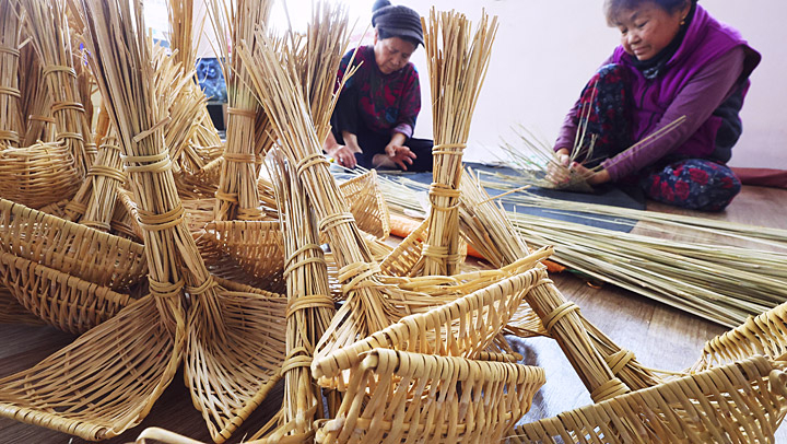 설을 한 달여 앞둔 19일 경기도 안성시 죽산면 '복조리 마을'로 불리는 신대마을회관에서 어르신들이 복조리를 만들고 있다. 연합