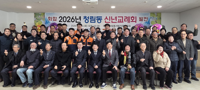 포항시 남구 청림동에서 새해 지역 발전과 화합을 다짐하는 신년교례회가 열렸다.청림동 개발자문위원회는 20일 청림동행정복지센터 2층 대회의실에서 2026년 신년교례회를 개최했다. 이날 행사에는 정정득 남구청장을 비롯해 지역 도·시의원, 자생단체장, 해군·해병 관계자, 지역 원로와 기업체 관계자 등 100여 명이 참석했다.참석자들은 새해 덕담을 나누며 지역사회의 화합과 청림동 발전을 위한 의지를 다졌다. 행사에서는 ‘새해 소원지’ 작성 시간도 마련돼, 주민들은 청림동의 밝은 미래를 기원하며 공동체 발전을 위해 힘을 모을 것을 다짐했다.정정득 남구청장은 신년사를 통해 “2026년은 청림동의 미래를 준비하는 중요한 해”라며 “주민들이 서로 따뜻한 마음을 나누고 함께 희망을 키워가는 뜻깊은 자리가 되길 바란다”고 말했다.추왕근 개발자문위원장은 “이번 신년교례회가 청림동 도약의 출발점이 되길 기대한다”며 “주민 간 소통과 협력을 바탕으로 더욱 살기 좋은 공동체를 만들어가겠다”고 밝혔다.