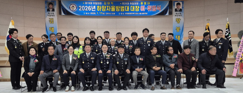 경산시 하양자율방범대는 지난 17일 하양읍 행정복지센터에서 2026년 대장단 이·취임식을 개최했다.