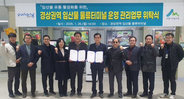 포항시가 임산물 생산·유통 체계의 효율화를 위한 핵심 인프라인 임산물 물류터미널을 본격 가동하며 경상권 임산물 유통 거점으로의 도약에 나섰다.포항시는 26일 북구 흥해읍에 위치한 임산물 물류터미널에서 포항시산림조합과 ‘임산물 물류터미널 운영·관리 업무 위‧수탁 협약식’을 개최했다. 이날 협약을 통해 포항시산림조합은 향후 3년간 물류터미널의 운영과 관리를 맡게 된다.이번 협약은 임산물 유통 구조를 체계적으로 정비하고, 경상권역 내 안정적인 임산물 확보와 판로 확대 방안을 모색하기 위해 마련됐다. 위탁 대상에는 선별작업장과 저장고, 모니터링실, 회의실, 휴게실 등 주요 시설은 물론 하역장과 주차장 등 부대시설도 포함된다.해당 임산물 물류터미널은 총사업비 40억 원이 투입돼 지난해 11월 준공됐다. 국비 20억 원, 도비 6억 원, 시비 14억 원이 투입된 이 시설은 임산물 집하·선별·저장·출하 기능을 한곳에 갖춘 종합 물류 거점이다.운영을 맡은 포항시산림조합은 1962년 설립된 지역 대표 산림 협동조합으로, 현재 5,803명의 조합원과 42명의 임직원이 활동 중이다. 산림경영지도와 휴양림 조성, 목재펠릿 제조·판매, 상호금융사업 등 다양한 산림 관련 사업을 수행하며 지역 임업 발전을 이끌고 있다.시는 물류터미널 가동으로 임산물 생산부터 유통까지의 과정이 일원화돼 유통 비용 절감과 품질 관리 강화 효과를 기대하고 있다. 이를 통해 임업인의 소득 증대는 물론 소비자 가격 안정에도 기여할 것으로 보고 있다.포항시 관계자는 “임산물 물류터미널 운영을 통해 지역 임산물의 경쟁력을 높이고 안정적인 판로를 확보할 수 있을 것”이라며 “장기적으로는 포항이 경상권 임산물 유통의 중심지로 자리매김하도록 적극 지원하겠다”고 말했다.