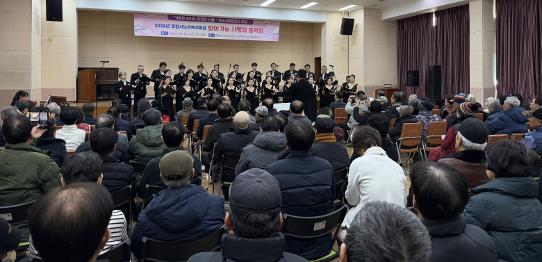 포항시시설관리공단이 운영하는 포항시노인복지회관이 한겨울 어르신들의 마음을 녹이는 음악회를 열어 호응을 얻었다.포항시노인복지회관은 28일 관내 어르신들을 초청해 포항시립합창단과 함께하는 ‘사랑의 음악회’를 개최했다고 29일 밝혔다. 이번 음악회는 겨울철 외부 활동이 줄어든 어르신들에게 문화 향유 기회를 제공하고 정서적 안정을 돕기 위해 마련됐다.이날 무대에 오른 포항시립합창단은 정통 합창곡은 물론 대중에게 친숙한 가요까지 폭넓은 레퍼토리를 선보이며 관객들의 큰 박수를 받았다. 풍성한 화음과 따뜻한 무대 연출은 공연장을 찾은 어르신들에게 깊은 감동을 전했다.공연을 관람한 한 어르신은 “추운 겨울에 이렇게 수준 높은 공연을 가까이에서 볼 수 있어 정말 행복했다”며 “오랜만에 마음까지 따뜻해지는 시간이었다”고 말했다.노인복지회관 관계자는 “어르신들이 문화 공연을 통해 일상 속 활력을 되찾을 수 있도록 앞으로도 다양한 문화·여가 프로그램을 지속적으로 운영할 계획”이라며 “정서적 만족과 삶의 질 향상에 실질적인 도움이 되는 프로그램을 확대해 나가겠다”고 밝혔다.