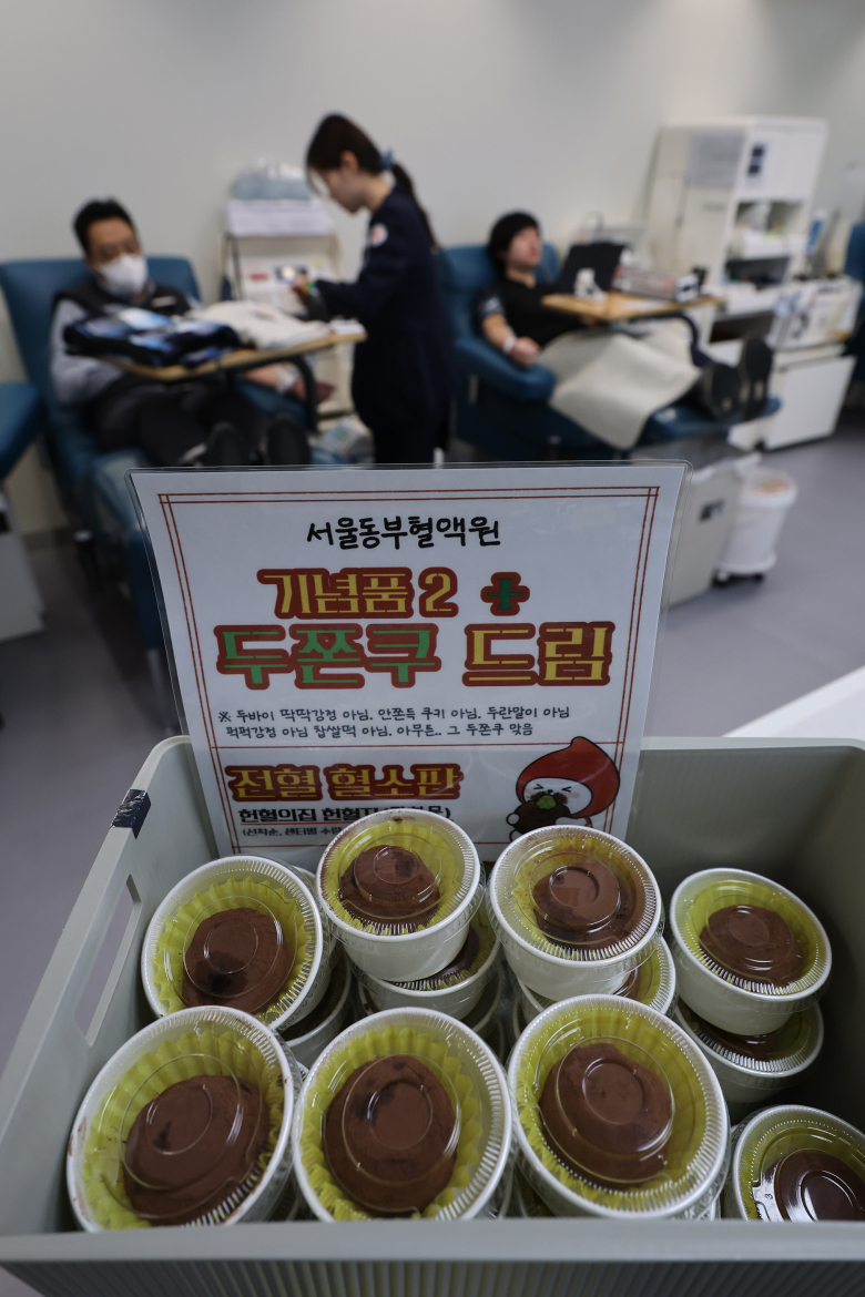 29일 서울 종로구 대한적십자사 서울동부혈액원 헌혈의집 광화문센터에 전혈 혈소판 헌혈자에게 증정될 '두바이 쫀득 쿠키(두쫀쿠)'가 놓여있다. 연합