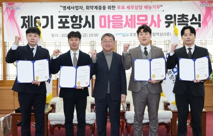 세금 문제로 어려움을 겪는 영세 납세자와 소상공인을 위해 포항시가 ‘마을세무사’ 제6기를 새롭게 구성하고 무료 세무상담 지원에 나섰다.포항시는 30일 제6기 포항시 마을세무사 12명을 위촉하고 향후 2년간 시민 대상 무료 세무상담 서비스를 본격 운영한다고 밝혔다. 이번에 위촉된 마을세무사는 재위촉 8명과 신규 위촉 4명으로 구성됐으며 활동 기간은 내년 12월까지다.마을세무사들은 영세상인과 농어민, 도시 서민 등을 대상으로 국세와 지방세 전반에 대한 무료 상담을 제공하고, 지방세 불복 청구 지원 등 실질적인 세무 서비스를 수행하게 된다. 세무사 비용 부담이나 정보 부족으로 상담을 받기 어려웠던 시민들에게 도움이 될 것으로 기대된다.마을세무사 제도는 세무사의 재능기부를 통해 세무 사각지대를 해소하기 위해 마련된 제도로, 시민들의 세무 접근성을 높이는 동시에 전문직의 사회공헌 문화를 확산시키는 취지로 운영되고 있다.포항시는 이번 제6기 출범을 계기로 고금리와 물가 상승 등으로 경영 부담이 커진 소상공인과 농어민들의 세금 관련 고충을 덜어주는 데 제도를 적극 활용할 방침이다.이강덕 포항시장은 “세금 문제로 어려움을 겪는 시민들에게 실질적인 도움이 되는 제도가 되길 바란다”며 “재능기부에 나서준 세무사들께 감사드리며, 앞으로도 마을세무사 제도를 활성화해 시민 부담을 줄이겠다”고 말했다.마을세무사 현황과 상담 방법은 포항시청 홈페이지에서 확인할 수 있으며, 자세한 문의는 포항시청 납세자보호관을 통해 안내받을 수 있다.