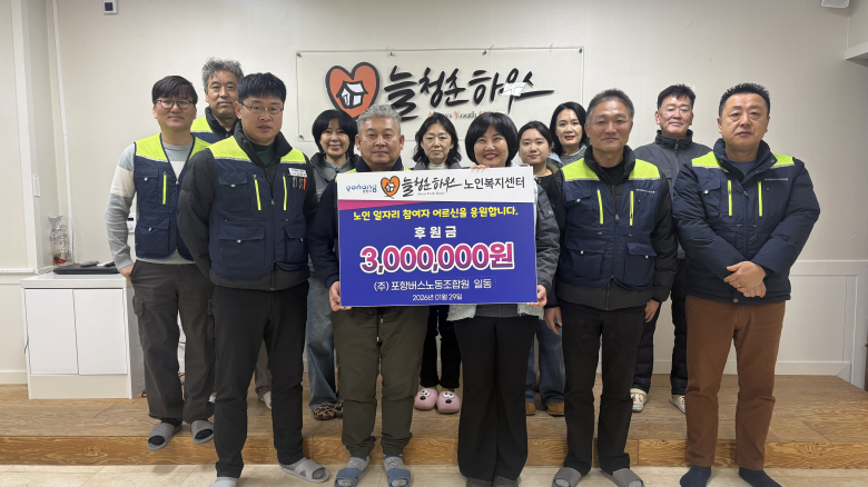 포항시 일자리수행기관인 늘청춘하우스노인복지센터는 지난달 29일 (주)포항버스노동조합으로부터 후원금을 전달받았다. ㈜포항버스노조 최명관 위원장은 “일자리에 참여하고 계시는 어르신들께서 지역사회를 위해 헌신적으로 앞장서고 계시는 데에 대한 보답의 일환으로 구룡포지역 어르신들에게 작으나마 도움이 될 수 있도록 노조원들이 지속적으로 나눔실천에 앞장서는 계기를 마련했다”고 전했다.늘청춘하우스노인복지센터 김란경 센터장은 “어르신께 베풀어주신 성의에 감사드리며 성원에 힘입어 앞으로도 봉사와 실천의 정신으로 따뜻한 마음을 이어 나갈 수 있도록 노력하겠다”고 밝혔다.