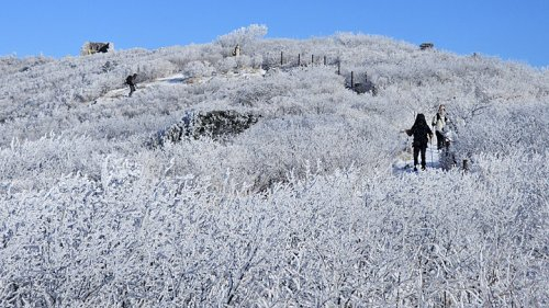 1일 강원 태백시 태백산 국립공원 정상 일원에 상고대가 활짝 펴 겨울 풍광을 연출하고 있다. 연합