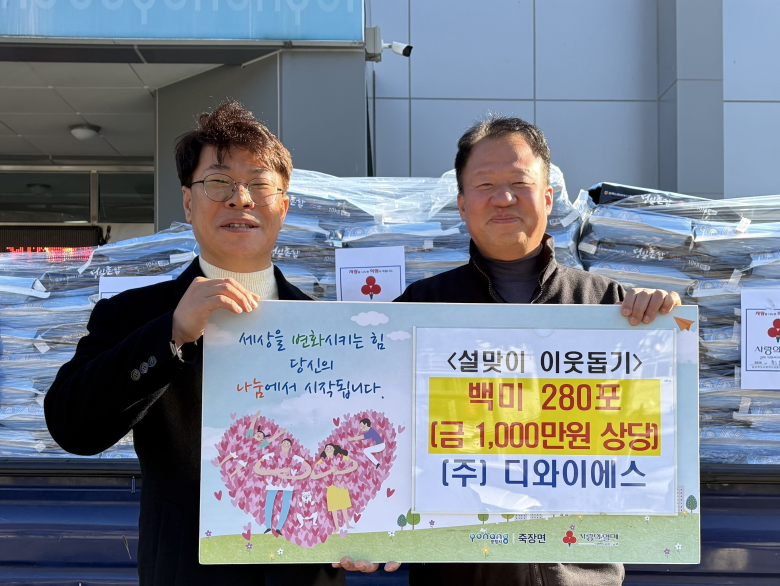 포항시 북구 죽장면에 지역 기업인의 온정이 전해졌다.자동차 부품 제조업체 ㈜디와이에스(대표 김동우)는 3일 관내 어려운 이웃을 돕기 위해 1000만 원 상당의 백미 280포를 죽장면 행정복지센터에 기탁했다.㈜디와이에스는 경주에 본사를 둔 자동차 부품 전문기업으로, 김동우 대표는 죽장면 출신이다. 김 대표는 평소에도 성금과 생필품 기탁을 통해 지역사회 나눔 활동을 이어오고 있다.이 회사는 지난해에도 1000만 원의 성금을 기탁한 데 이어, 올해는 보다 많은 가구에 실질적인 도움이 돌아갈 수 있도록 같은 금액 상당의 백미를 마련했다. 기탁된 쌀은 지역 내 저소득층과 취약계층 가구에 전달될 예정이다.김보연 죽장면장은 “어려운 경제 여건 속에서도 매년 지역을 잊지 않고 나눔을 실천해 주셔서 감사드린다”며 “기탁된 물품은 도움이 필요한 이웃들에게 신속하고 공정하게 전달하겠다”고 말했다.
