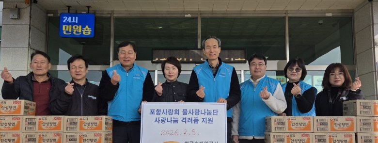 한국수자원공사 포항권지사(지사장 김진)는 설 명절을 앞둔  5일 기계면 행정복지센터(면장 최정훈)를 방문해 지역 내 어려운 이웃을 돕기 위한 라면 80상자를 기탁했다.이번 기탁은 한국수자원공사 포항권지사 직원들로 구성된 사회공헌 동아리 ‘물사랑나눔단 포항사랑회’가 자발적으로 성금을 모아 마련한 것으로, 직원들의 따뜻한 마음이 담긴 나눔이라는 점에서 의미를 더했다.한국수자원공사 포항권지사는 일회성 지원에 그치지 않고 매년 분기별로 지역사회 소외계층을 위한 정기적인 나눔 활동을 이어오며 기업의 사회적 책임을 적극 실천하고 있다.김진 한국수자원공사 포항권지사장은 “설 명절을 앞두고 직원들과 함께 모은 작은 정성이 이웃들에게 실질적인 도움이 되길 바란다”며 “앞으로도 지역사회와 상생하며 물사랑을 넘어 이웃사랑을 꾸준히 실천해 나가겠다”고 말했다.최정훈 기계면장은 “기계면 주민들을 위해 따뜻한 나눔을 실천해 주신 포항권지사 임직원 여러분께 감사드린다”며 “기탁된 물품은 도움이 필요한 가정에 소중히 전달하겠다”고 전했다.