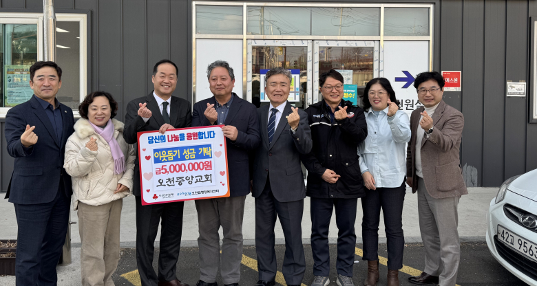 포항시 남구 오천읍에 위치한 오천중앙교회가 설 명절을 앞두고 지역 내 취약계층을 위한 이웃돕기 성금 500만 원을 기탁했다.오천중앙교회는 5일 오천읍 행정복지센터를 찾아 성도들이 자발적으로 모은 성금을 전달하며 따뜻한 나눔을 실천했다. 이번 성금은 독거 어르신과 저소득 가정 등 도움이 필요한 취약계층을 지원하는 데 사용될 예정이다.박진찬 담임목사는 “명절을 앞두고 어려움을 겪는 이웃들에게 작은 위로와 희망이 되길 바라는 마음으로 성도들과 뜻을 모았다”며 “앞으로도 지역사회와 함께하는 나눔 활동을 지속해 나가겠다”고 말했다.박상근 오천읍장은 “지역 이웃을 위한 꾸준한 나눔을 실천해온 오천중앙교회에 감사드린다”며 “기탁된 성금은 복지 사각지대에 놓인 주민들에게 소중히 전달하겠다”고 밝혔다.