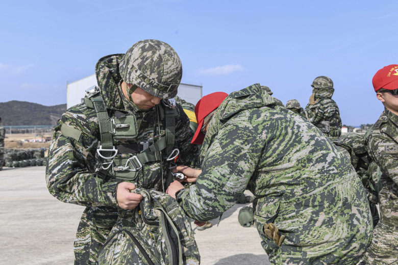 해병대 1사단 7여단 공정대대가 상륙기동헬기 ‘마린온’을 활용한 정기 강하훈련을 실시하며 공정작전 수행 능력 강화에 나섰다.해병대 1사단은 5일 포항 조사리 강하훈련장에서 공정대대 장병 130여 명과 마린온(MUH-1) 헬기 2대가 참가한 가운데 올해 첫 정기 강하훈련을 진행했다고 6일 밝혔다.이번 훈련은 공정대대로서 요구되는 실전 임무 수행 능력을 높이는 데 중점을 두고 실시됐다. 훈련에 앞서 장병들은 전투연병장과 교육훈련단 공수교육대에서 지상 숙달훈련을 통해 착지 요령과 우발상황 대처 능력을 반복 숙달했다. 모형문·모형탑 훈련과 공수 시뮬레이터를 활용해 올바른 착지 자세를 익히고 안전 의식을 강화했다.
