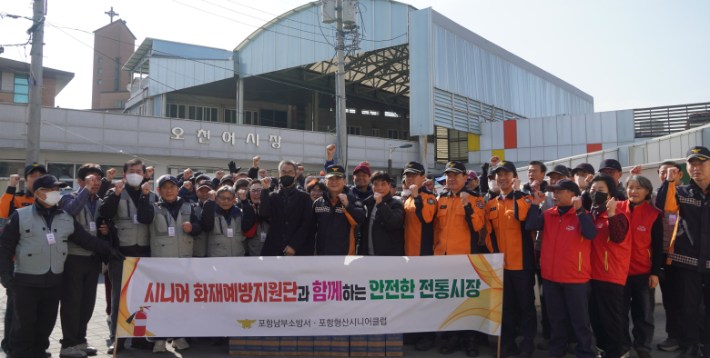포항남부소방서가 시니어 화재예방지원단과 함께 전통시장을 찾아 화재 예방 활동을 벌였다.포항남부소방서는 5일 오후 오천시장에서 포항형산시니어클럽 시니어 화재예방지원단, 오천시장 상인회와 함께 전통시장 화재 예방 캠페인을 실시했다. 이날 행사에는 유문선 포항남부소방서장을 비롯해 시니어클럽 관계자와 상인회 관계자 등 70여 명이 참여했다.시니어 화재예방지원단은 지역 어르신들로 구성된 단체로, 독거노인과 취약계층 가구를 대상으로 화재 안전 점검을 지원하고 전통시장 등 화재 취약 지역에서 예방 활동을 이어오고 있다. 포항남부소방서와 업무협약을 맺고 현장 중심의 화재 예방 활동을 수행 중이다.이번 캠페인은 전통시장 내 화재 위험 요소를 사전에 점검하고 안전한 영업 환경을 조성하기 위해 마련됐다. 참가자들은 오천시장 상인회에 소화기 20개를 전달하고, 시장 내 적정 장소에 비치했다.또 소화기와 콘센트 안전 패치를 상인들에게 배부하며 멀티탭 과부하와 노후 콘센트 등 화재 위험 요소를 점검했다. 현장에서 발견된 위험 요인에 대해서는 즉시 시정하거나 개선을 권고했다.유문선 포항남부소방서장은 “전통시장은 가연물과 전기설비가 밀집돼 있어 화재 위험이 높은 곳”이라며 “시니어 화재예방지원단과 상인회가 함께 예방 활동에 나선 것은 전통시장 안전을 지키는 데 의미 있는 사례”라고 말했다.