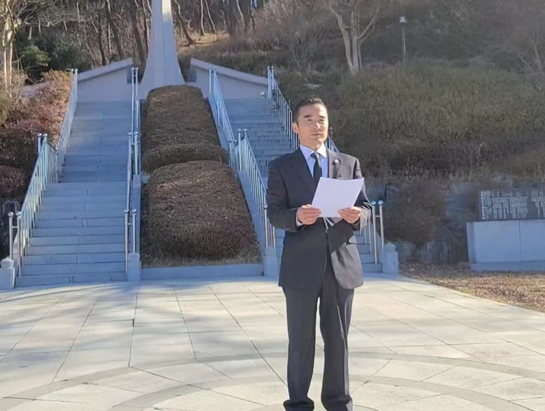 이승민 청도군의원(무소속)이 9일 충혼탑에서 청도군수 출마선언 기자회견을 가졌다.