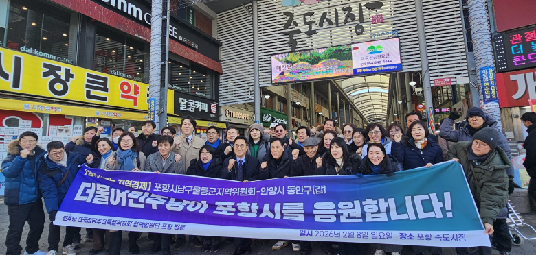 더불어민주당 민병덕 국회의원(경기 안양 동안구갑)이 8일 포항을 찾아 전통시장과 산업 현장을 잇따라 방문하며 민생 현안을 점검했다.더불어민주당 포항시남구울릉군지역위원회에 따르면 민 의원은 이날 지역위원회 관계자들과 함께 포항 죽도시장을 찾아 상인들과 직접 만나 명절을 앞둔 경기 상황과 애로사항을 청취했다. 영하권의 추운 날씨 속에서도 민 의원은 상인들과 장보기를 함께하며 지역 상권의 어려움에 공감했다.이어 민 의원은 현대제철 노조와 간담회를 열고 철강 경기 침체로 인한 산업 현장의 위기 상황을 공유했다. 이 자리에서 노동자들은 일자리 불안과 산업 경쟁력 약화를 우려했으며, 민 의원은 “국회 차원에서 포항 철강 산업의 어려움을 해소할 수 있는 방안을 적극적으로 모색하겠다”고 밝혔다.이날 간담회에서는 포항 지역 주요 현안도 함께 논의됐다. 지역위원회는 ▲포항 철강 경기 위축과 일자리 대책 ▲대구·경북 행정통합 과정에서의 포항 위상 ▲국가 북극해운정보센터 포항 유치 ▲지역 공공의료 확충과 포스텍 의과대학 설립 ▲영일만대교 조속 추진 등을 건의했다. 이와 함께 포항 광역철도 도입을 위한 제5차 국가철도망 구축계획 반영도 요청했다.이후 열린 국정보고회에서 민 의원은 이재명 정부의 국정운영 5개년 계획을 소개하며 정치·경제·사회·외교 전반의 국정 목표를 설명했다. 그는 국민 통합과 혁신 경제, 균형 성장, 사회 안전망 강화, 국익 중심 외교안보 등을 주요 방향으로 제시했다.민 의원은 “포항은 개인적으로도 인연이 깊은 지역”이라며 “이번 방문에서 들은 현장의 목소리를 국회에서 실질적인 정책과 대안으로 연결시키겠다”고 말했다.