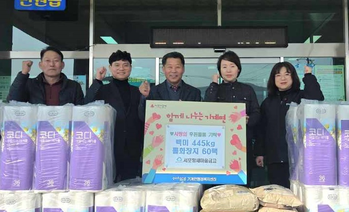 서포항새마을금고가 설 명절을 앞두고 지역 이웃을 위한 따뜻한 나눔을 실천했다.서포항새마을금고는 지난 5일 포항시 기계면행정복지센터를 방문해 백미 445kg과 롤 화장지 60팩을 기탁했다. 전달된 성품은 기계면 지역의 독거노인과 저소득 가정 등 취약계층에 전달될 예정이다.이번 기탁 물품은 새마을금고의 대표적인 사회공헌 활동인 ‘사랑의 좀도리 운동’을 통해 마련됐다. ‘좀도리 운동’은 과거 쌀을 조금씩 덜어 이웃을 도왔던 전통적인 나눔 정신을 계승한 것으로, 회원들의 자발적인 참여로 운영되고 있다.서포항새마을금고는 매년 명절마다 지역 내 소외계층을 위한 후원을 이어오며 지역 금융기관으로서의 사회적 책임을 꾸준히 실천하고 있다.이기석 서포항새마을금고 이사장은 “회원들의 정성이 모여 지역 이웃들에게 실질적인 도움이 되길 바란다”며 “앞으로도 지역민과 함께 호흡하며 상생하는 금융기관이 되도록 노력하겠다”고 말했다.최정훈 기계면장은 “매년 잊지 않고 따뜻한 나눔을 전해주시는 서포항새마을금고에 감사드린다”며 “기탁된 물품은 꼭 필요한 이웃들에게 정성껏 전달하겠다”고 밝혔다.