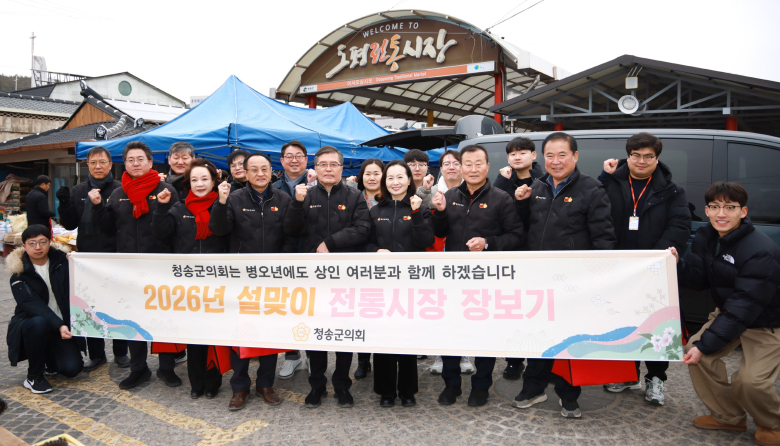 청송군의회는 설 명절을 앞둔 지난 10일 현동시장을 찾아 ‘설맞이 전통시장 장보기 행사’를 가졌다. 이번 행사는 지속적인 물가 상승과 소비 심리 위축으로 어려움을 겪고 있는 지역 상권에 활력을 불어넣고 명절을 맞아 상인들을 격려하며 민생 안정을 도모하기 위해 마련됐다. 이날 행사에는 심상휴 의장을 비롯한 청송군의회 의원들과 의회사무과 직원이 동참했다. 의원들은 미리 준비한 ‘청송사랑화폐’를 사용하여 제수용품과 명절 선물, 생필품 등을 직접 구매하며 지역 경제 살리기에 앞장섰다. 특히 의원들은 장을 보는 틈틈이 시장 상인들과 만나 명절 대목 체감 경기와 운영상의 애로사항을 청취하는 등 현장의 목소리에 귀를 기울였다. 또한 시장을 찾은 군민들과 명절 덕담을 나누며 전통시장 이용을 적극 독려했다. 심상휴 의장은 “오늘 행사가 경기 침체로 힘든 시기를 보내고 있는 상인 여러분께 작게나마 보탬이 되기를 바란다”며 “군민 여러분께서도 넉넉한 인심과 정이 넘치는 우리 전통시장을 많이 이용하여 알뜰하게 차례상을 준비하시고 지역 경제 회복에도 힘을 보태주시길 부탁드린다”고 말했다.