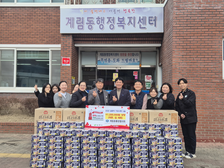 상주시 계림동 통장협의회는 지난 11일 설 명절을 앞두고 지역 내 저소득 가구를 위한 설 맞이 이웃돕기 전달식을 개최하며 따뜻한 나눔을 실천했다. 계림동통장협의회는 생활에 어려움을 겪는 이웃들이 따뜻한 명절을 보낼 수 있도록 정성을 모아 컵라면과 김선물세트 등 총 120만 원 상당의 물품을 마련했으며 해당 물품은 지역 저소득 가구에 전달될 예정이다. 박희용 계림동통장협의회장은 “설 명절을 맞아 어려운 이웃들에게 조금이나마 힘이 되길 바라는 마음으로 통장들이 뜻을 모았다”며 “앞으로도 지역사회와 함께하는 나눔 활동을 지속적으로 실천해 나가겠다”고 했다. 전재성 계림동장은 “지역의 어려운 이웃을 위해 항상 앞장서 주시는 통장협의회에 깊이 감사드린다. 동에서도 저소득 가구를 세심히 살피고 모든 주민이 소외됨 없이 따뜻한 명절을 보낼 수 있도록 최선을 다하겠다”고 했다.