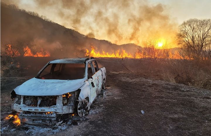 경북 영천시 금호읍의 한 강변에 주차된 차량에서 화재가 발생했다.18일 경북소방본부에 따르면 이날 오후 5시5분께 영천시 금호읍 황정리 인근 하천에서 낚시 중 차에 불이 났다는 신고가 접수됐다.신고를 받은 소방 당국은 특수대응단과 산불 진화 헬기 1대 등을 현장에 투입해 이날 오후 8시29분께 불길을 완전히 진압했다.이 불로 렉스턴 스포츠유틸리티(2021년식) 1대가 전소되고 하천 내 잡목 등 10㏊가 소실된 것으로 추정된다.