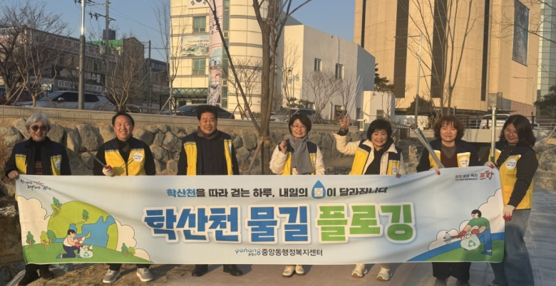포항시 북구 중앙동은 23일 영일대환경플로깅봉사단과 함께 학산천 생태하천 일원에서 플로깅(걷기와 쓰레기 수거를 결합한 환경정화 활동)을 실시했다고 밝혔다.이번 활동은 20일 학산천 산책로 일대에서 진행됐으며, 영일대환경플로깅봉사단 회원 20여 명과 중앙동행정복지센터 직원들이 참여해 하천 주변을 걸으며 생활 쓰레기를 수거하고 생태하천 복원의 의미를 되새기는 시간을 가졌다.학산천은 약 30년간 복개돼 있다가 주민들의 지속적인 요구와 행정의 노력으로 복원돼 다시 흐르게 된 도심 하천으로, 최근에는 산책과 휴식이 가능한 친환경 공간으로 시민들의 사랑을 받고 있다.안양숙 영일대환경플로깅봉사단장은 “학산천이 다시 흐르게 된 것은 지역 공동체의 관심과 실천이 만들어낸 소중한 성과”라며 “앞으로도 꾸준한 플로깅 활동을 통해 깨끗하고 아름다운 환경을 지켜나가겠다”고 말했다.정연학 중앙동장은 “학산천을 아끼는 마음으로 함께해주신 봉사단에 깊이 감사드린다”며 “학산천이 중앙동의 자랑을 넘어 포항을 대표하는 생태하천으로 자리매김할 수 있도록 지속적인 관리와 환경정비에 힘쓰겠다”고 밝혔다.