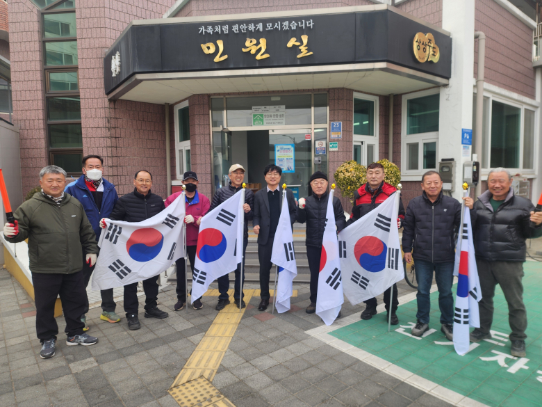 상주시 동문동에서는 지난 23일 제107주년 3·1절을 맞아 순국선열의 숭고한 독립정신을 가지고 나라사랑의 의미를 되새기기 위한 태극기 달기 운동을 실시했다. 이번 운동은 새마을지도자들이 중심이 되어 주요 도로변과 마을 일원에 태극기를 게양하고 각 가정에서도 자발적으로 태극기를 달 수 있도록 독려하며 나라사랑 실천 분위기 확산에 앞장섰다.특히 주민 참여를 이끌어내며 3·1절의 역사적 의미를 되새기고 공동체 애국심을 높이는 계기를 마련했다. 최낙정 동문동장은 “바쁜 일정 속에서도 태극기 달기 운동에 적극 참여해 주신 새마을지도자 여려분과 주민들게 깊이 감사드린다”며 “이번 3·1절을 계기로 순국선열의 숭고한 희생정신을 되새기고, 일상속에서 나라사랑을 실천하고 뜻깊은 시간이 되었기를 바란다”고 했다