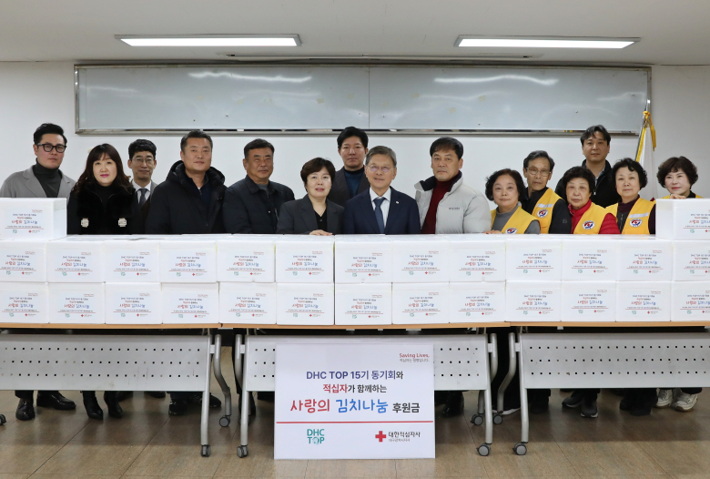 대구보건대학교 웰니스문화산업최고위과정(DHC TOP) 15기 동기회가 지난 24일 대한적십자사 대구지사를 방문해 취약계층 지원을 위한 김치를 후원했다.이날 대구적십자사 강당에서 진행된 전달식에서 동기회는 200만 원 상당의 김치(5kg) 65박스를 기탁했다. 해당 물품은 중구 지역 취약계층 65세대에 전달될 예정이다.DHC TOP 15기 동기회는 2년 연속 김치 후원을 이어오며 지역사회를 위한 나눔 활동을 지속하고 있다.이진재 동기회장은 “회원들과 마음을 모아 준비한 김치가 이웃들에게 작지만 따뜻한 위로가 되길 바란다”며 “앞으로도 지역사회에 보탬이 되는 단체로 의미 있는 나눔을 실천해 가겠다”고 말했다.배인호 대한적십자사 대구지사 회장은 “매년 잊지 않고 소중한 나눔을 실천해 주시는 DHC TOP 15기 동기회에 깊이 감사드린다”며 “전달해주신 김치는 도움이 필요한 이웃들에게 소중히 전달하겠다”고 밝혔다.
