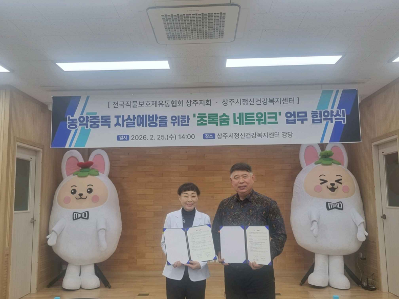 상주시정신건강복지센터는 전국작물보호제유통협회 상주지회와 협력하여 농약중독 예방을 위한 ‘초록숨 네트워크’ 사업을 실시했다. 농약 중독은 특정 수단에 대한 접근 차단과 관리개입이 가능한 유형으로 농약 유통 보관관리와 지역기반 감시체계를 통한 예방 효과가 기대되는 수단이다. 최근 상주시의 5년간(2020~2024) 자살수단 중 농약 중독을 통한 자살 사망 발생 추세는 증가하고 있어 작물보호제유통협회와 협력하여 자살예방교육, 계절별 캠페인, 생명사랑 실천가게 참여 기관 확대 등 안전한 농약 사용 환경 조성 및 농약중독 자살예방을 위해 사업을 추진해나갈 계획이다. 김민선 건강증진과장은 “초록숨 네트워크 사업을 통해 지역사회 안전망을 견고히 하고 생명존중 문화가 더욱 확산될 수 있도록 지역사회의 많은 관심과 참여를 바란다”고 했다. 상주시정신건강복지센터에서는 정신건강의 어려움을 겪고 있는 상주 시민들을 위해 정신건강상담 및 검사, 치료비 등을 지원하고 있으며, 자세한 사항은 054-536-0668로 문의하면 된다.
