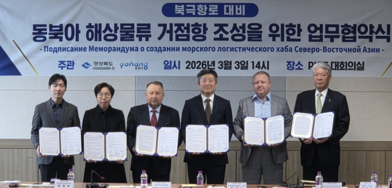 포항 영일만항이 북극항로 시대를 대비한 동북아 해상물류 거점항 선점에 본격 나섰다.포항시는 3일 ㈜포항영일신항만(PICT) 대회의실에서 경상북도, ㈜포항영일신항만, ㈜코르웰, 러시아 해운·물류 기업 RusTrans Group LLC, 국제산업기업가연맹(ICIE) 등 6개 기관과 ‘동북아 해상물류 거점항 조성을 위한 업무협약(MOU)’을 체결했다고 밝혔다.이번 협약은 영일만항과 러시아 극동항만을 잇는 정기·부정기 항로 개발을 비롯해 북극항로 연계 국제물류체계 구축, 선박 수리·조선(MRO) 및 항만 서비스 산업 공동 개발, 해양 신에너지 연계 사업 협력 등을 주요 내용으로 담고 있다.이날 협약식에는 김성태 ㈜코르웰 대표, 예브게니 주라블레프 RusTrans Group 아시아 지역대표, 예브게니 루세츠키 ICIE 부위원장 등 관계자 30여 명이 참석해 북방 물류망 구축을 위한 협력 의지를 공유했다.특히 RusTrans Group은 러시아 극동 지역과 중국 주요 항만을 연결하는 정기 컨테이너 노선을 운영하는 해운·물류 전문 기업으로, 포항시는 이 회사의 현지 물류 인프라와 네트워크를 활용해 북극항로 상용화에 대비한 최적의 물류 루트 개발과 물동량 확보에 나설 계획이다.아울러 전 세계 산업계 네트워크를 보유한 ICIE와의 협력은 영일만항 중심의 북방 물류 전략을 국제 시장에 알리고, 관련 기업 유치와 글로벌 협력 확대의 기반이 될 것으로 기대된다.장상길 포항시장 권한대행은 “이번 협약은 영일만항이 동북아 해상물류 중심지로 도약하는 중요한 출발점”이라며 “북극항로 시대에 대비해 영일만항이 국제 경쟁력을 갖춘 관문항으로 자리매김할 수 있도록 참여 기관들과 지속적으로 협력해 나가겠다”고 말했다.포항시는 향후 실무협의체를 구성해 협약 내용을 구체화하고, 북방 물류 시장을 선도하기 위한 단계별 실행 로드맵을 마련할 방침이다.
