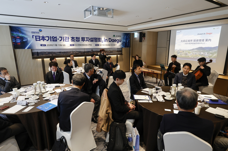 대구경북경제자유구역청(이하 DGFEZ)이 일본 기업과의 협력 확대를 위한 투자 유치 활동에 나섰다.DGFEZ는 지난 13일 대구 메리어트 호텔 이스트홀에서 국내 소재 일본계 기업 및 기관 관계자를 대상으로 ‘일본 기업·기관 초청 투자설명회 in Daegu’를 개최했다고 밝혔다.이번 행사는 코로나19 이후 위축됐던 일본계 기업의 지역 산업단지 방문과 대면 네트워킹을 활성화하고 일본 기업인들의 대구 방문과 교류 흐름을 회복하기 위해 마련됐다. 최근 한일 정상외교와 경제 교류가 활발해지는 흐름 속에서 AI·로봇, ICT·SW 등 미래 신산업 분야 협력 가능성을 공유하는 데 의미를 뒀다.설명회는 서울재팬클럽(SJC) 서울사무소와 협력해 진행됐으며 주한 일본계 기업 관계자들이 참석해 대구의 투자 환경과 전략 산업 육성 정책을 청취했다.카쿠다테 카즈키 서울재팬클럽 서울사무소 소장은 “대구의 로봇·ICT 산업 육성 방향을 구체적으로 이해할 수 있는 뜻깊은 자리였다”며 “수성알파시티의 산업 집적 여건과 성장 잠재력을 확인할 수 있었다”고 말했다.참석자들은 설명회 이후 대구간송미술관을 방문해 전시를 관람하는 문화체험 프로그램에도 참여했다. 한 일본 기업 관계자는 “대구는 산업과 문화가 잘 조화된 도시라는 점이 인상적이었다”고 전했다.김희석 DGFEZ 혁신성장본부장은 “이번 투자설명회를 통해 한일 기업 간 미래 신산업 분야 협력 기반을 넓히는 계기가 됐다”며 “일본계 기업과의 협력 기반을 공고히 해 실제 투자 검토와 사업 협력으로 이어지기를 기대한다”고 밝혔다.DGFEZ는 앞으로 일본계 기업을 대상으로 전략적 네트워크 구축과 맞춤형 투자 지원을 지속 추진하고 AI·로봇, ICT·SW 등 대구 미래 신산업 중심의 투자 유치 활동을 이어갈 계획이다.