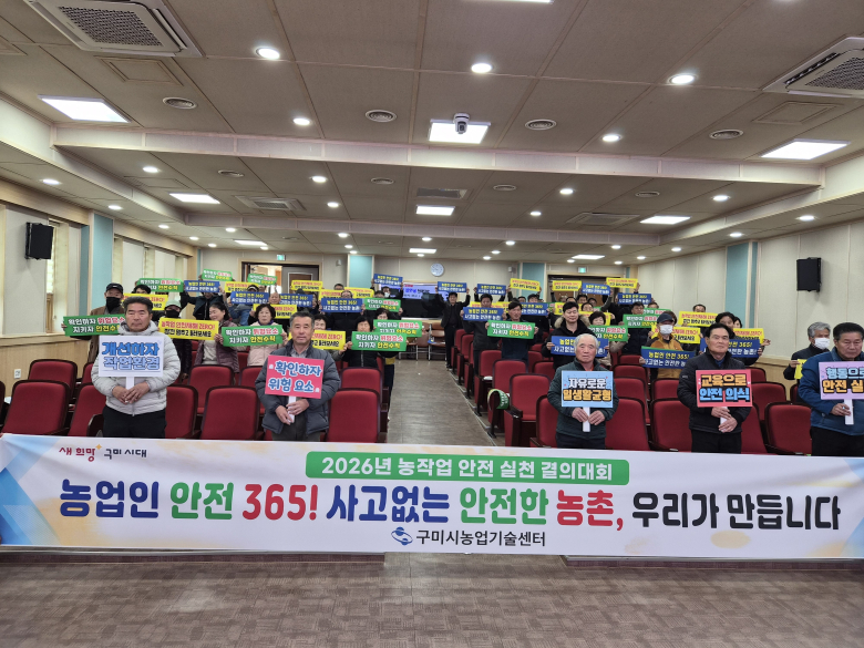 구미시가 농업 현장의 고질적인 안전사고를 예방하고 농업인이 안심하고 일할 수 있는 환경을 만들기 위해 전문적인 농작업 안전 컨설팅 시스템을 가동한다.구미시 농업기술센터는 지난 12일 '2026년 농작업 안전재해 예방 지원체계 구축사업' 설명회를 열고 전문 역량을 갖춘 농작업안전관리자를 통한 현장 중심의 안전 관리 체계를 구축했다.이번 사업의 핵심은 전문성을 갖춘 농작업안전관리자의 현장 배치다. 관리자는 단순한 서류 점검을 넘어 농업 현장을 직접 방문해 실질적인 위험 요소를 찾아낸다.구체적 요소는 ▲농가별 작업 환경과 농기계 사용 습관 등 작업 과정 전반의 위험성 진단 ▲진단 결과에 따른 일대일 맞춤형 개선 방안 제시와 안전 수칙 지도 ▲진단 결과에 근거해 농가에 필요한 개인 안전보호구 지원과 단계적 작업 환경 개선 추진이다.이날 설명회와 함께 진행된 '농작업 안전 365 실천결의대회'에서는 참여 농가들이 자발적인 안전 문화 확산을 다짐했다.참석한 농업인들은 ▲농기계 안전 사용 ▲농약 살포 시 전용 보호구 착용 ▲작업 전후 충분한 스트레칭 등 일상에서 간과하기 쉬운 핵심 안전 수칙 준수를 결의했다.구미시는 이번 사업이 농업 현장의 막연한 안전 불감증을 해소하고 사고 발생 시 사후 대응 중심이었던 행정을 사전 예방 중심으로 전환하는 계기가 될 것으로 보고 있다.김영혁 구미시 농업기술센터소장은 "지역에서 처음 도입하는 이번 농작업 안전 모델은 관리자의 전문 지식과 농업인의 실천 의지를 결합한 혁신적 시도"라며 "365일 사고 없는 안전한 농업 환경을 조성해 농업인들이 오로지 생업에만 전념할 수 있도록 지원하겠다"고 밝혔다.