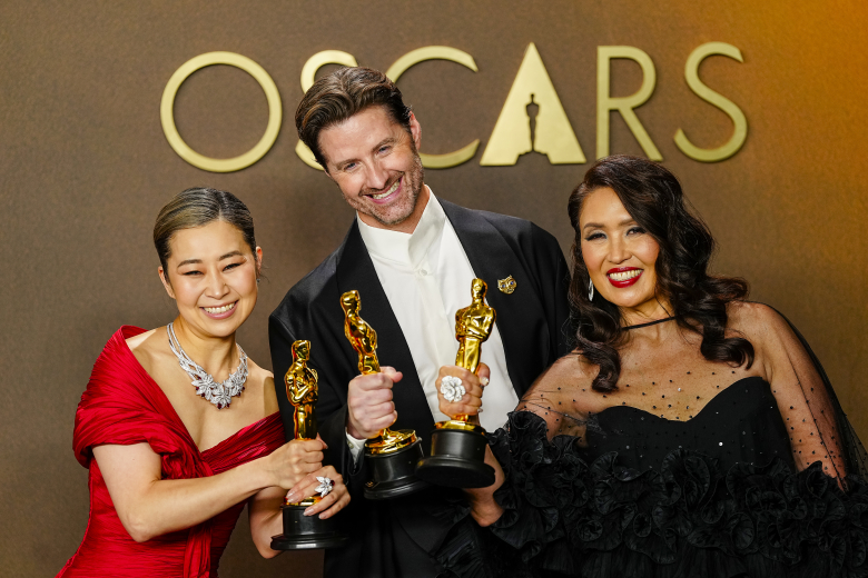 넷플릭스 애니메이션 영화 '케이팝 데몬 헌터스'가 미국 아카데미 시상식에서 장편 애니메이션상과 주제가상을 받으며 2관왕에 올랐다. '케데헌'은 15일(현지시간) 미국 로스엔젤레스(LA) 할리우드 돌비극장에서 열린 제98회 아카데미 시상식에서 장편 애니메이션상과 주제가상 수상작으로 호명됐다. 연출자 매기 강 감독은 '케데헌' 주제곡 '골든'(Golden)이 나오는 가운데 빨간 드레스를 입고 무대에 올라 장편 애니메이션 부문 오스카 트로피를 품에 안았다. 그는 "'저와 닮은 분들'이 주인공인 이런 영화가 나오기까지 너무 오랜 시간이 걸려 미안하다. 다음 세대는 기다리지 않아도 될 것"이라며 "이 상을 한국과 전 세계 한국인에게 바친다"고 울먹이는 목소리로 수상 소감을 말했다. 공동 연출자 크리스 아펠한스 감독은 "음악과 이야기에는 문화와 국경을 초월해 우리를 연결하는 힘이 있다"며 "젊은 영화제작자, 예술가, 음악가에게 '당신의 이야기를 들려달라. 당신의 목소리로 노래하라. 세상이 기다리고 있다'는 말을 전하고 싶다"고 했다. '케데헌' 제작자인 미셸 웡은 "파트너 넷플릭스와 소니픽처스 팀원들에게 감사드린다"면서 가족에게도 감사한 마음을 전했다. '케데헌' 오리지널사운드트랙(OST) '골든'은 주제가상을 차지했다. K팝 장르 노래가 아카데미에서 주제가상을 받은 것은 이번이 처음이다. '골든'을 부른 가수이자 공동 작사·작곡가 이재는 무대에 올라 "이 곡은 성공이 아닌 회복에 관한 노래"라며 "어린 시절 사람들은 K팝을 좋아하는 저를 놀렸지만, 지금은 모두가 우리의 노래를 부른다. 자랑스럽다"고 울먹이며 말했다. 공동 작사가 마크 소넨블릭과 더블랙레이블 소속 작곡가 곽중규·이유한·남희동(이상 IDO), 서정훈(24) 등도 무대에 함께 올라 기쁨을 나눴다. '케데헌'은 악령 사냥꾼(데몬 헌터스)인 걸그룹 헌트릭스가 사람들의 영혼을 노리는 악령 보이그룹 사자보이즈에 맞서는 이야기를 그린 애니메이션이다. 지난해 6월 공개된 이후 선풍적인 인기를 끌었다. 글로벌 누적 시청 5억회를 넘기며 '오징어 게임' 시리즈를 제치고 역대 넷플릭스 콘텐츠 가운데 최고 흥행을 기록했다. 작품 속 OST도 인기를 끌어 '골든'(Golden)은 K팝 장르 최초로 빌보드 싱글 차트 '핫 100'과 영국 오피셜 싱글 차트 '톱 100' 1위를 차지했다. 작품과 주제가는 지난 1월 골든글로브 시상식에서 애니메이션상과 주제가상을 받았고, 지난달 그래미 시상식에선 K팝 장르 최초로 '베스트 송 리튼 포 비주얼 미디어'(시각매체용 최우수 노래) 부문도 수상했다. '케데헌'은 세계 최고 권위의 영화 시상식인 아카데미에서도 디즈니의 '주토피아 2', 픽사 스튜디오의 '엘리오' 등 쟁쟁한 후보를 제치고 장편 애니메이션상을 받은 데 이어 주제가상도 거머쥐며 작품성과 세계적인 인기를 인정받았다.