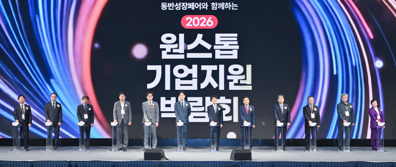 대구시, 중소벤처기업부, 동반성장위원회가 공동 개최하고 대구테크노파크가 주관하는 ‘2026 원스톱기업지원박람회’가 17일 엑스코에서 성황리에 막을 열었다.이날 개막식에는 김정기 대구시장 권한대행, 노용석 중소벤처기업부 제1차관, 곽재욱 동반성장위원회 운영처장, 이만규 대구시의회 의장 등 주요 인사를 비롯한 경제단체장, 공공기관장, 지역기업인 등 100여명이 참석했다.이번 박람회는 ▲구매상담 ▲수출확대 ▲투자상담 ▲인재채용 ▲애로해결 ▲시책설명 등 기업의 성장지원을 위한 6개 핵심 프로그램이 진행된다. 특히 올해는 지역대학과 연계한 혁신인재 채용과 기술 애로 해소지원 프로그램도 함께 추진된다.원스톱기업지원박람회는 중소기업의 성장과 도약을 지원하기 위해 판로 개척부터 인재 채용까지 기업경영에 필요한 전 분야를 아우르는 명실상부 전국 유일의 원스톱 종합지원 비즈니스 행사다.노용석 중소벤처기업부 제1차관은 “중소기업의 애로해소와 성장을 위해 중앙부처와 지방정부가 함께 준비한 뜻깊은 행사”이라며 “지방주도성장 정책 기조에 맞게 중소벤처기업부도 지역 중소기업의 성장을 위해 적극적으로 노력하겠다”고 밝혔다.김정기 대구시장 권한대행 행정부시장은 “이번 박람회는 단순한 정보를 나누는 자리가 아니라 대구의 미래 먹거리를 함께 설계하는 경제 최전선”이라며 “원스톱 기업투자지원 시스템을 더욱 견고히 구축해 기업인들이 오직 경영에만 전념하는 환경을 만들겠다”고 말했다.