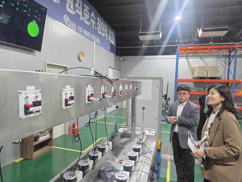 대구지방조달청이 지역 혁신기업을 찾아 현장 소통에 나섰다.윤경자 대구지방조달청장은 18일 대구 달성군 국가물산업클러스터 내 (주)케이디를 방문해 기술 개발 현장을 점검하고 기업 애로사항을 청취했다.케이디는 수도미터와 원격검침시스템을 생산하는 물산업 전문기업으로, 다수의 특허와 ISO 인증을 보유하고 있으며 2022년 경상북도 물산업 선도기업으로 선정된 바 있다.특히 혁신제품으로 지정된 ‘스마트 초음파 수도미터 및 원격검침시스템’은 ICT 기술을 활용해 가정의 물 사용량을 지자체 관제시스템으로 전송하는 것이 특징이다. 이를 통해 원격검침은 물론 누수·동파 여부를 진단하고, 취약계층의 이상 상황을 파악하는 데 활용될 수 있다.이날 현장에서는 공공조달을 통한 기술개발 제품 구매 확대 방안과 기업 현장의 애로사항에 대한 의견 교환이 이뤄졌으며, 생산 공정 전반에 대한 점검도 함께 진행됐다.정태화 케이디 대표는 “현장의 어려움을 직접 전달할 수 있는 의미 있는 자리였다”며 “기후테크 분야 기술개발을 통해 환경 산업 경쟁력을 높이겠다”고 말했다.윤경자 대구조달청장은 “공공조달 개혁을 통해 기업의 성장을 지원하고 있다”며 “앞으로도 현장 중심의 소통으로 기술혁신기업 육성과 지역경제 활성화에 기여하겠다”고 밝혔다.
