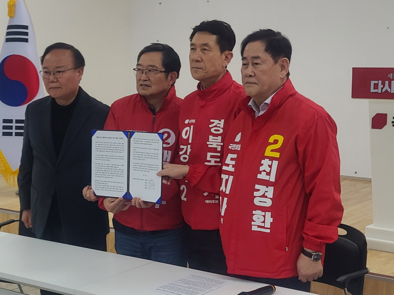 국민의힘 경북도지사 예비후보 경선에 참여한 김재원, 백승주, 이강덕, 최경환(가나다순) 예비후보는 19일 국민의힘 경북도당 대강당에서 합동 기자회견을 갖고 공정경선을 촉구했다.이날 4명의 예비후보들은 “공관위에서 실시하는 본경선 일정은 단 8일로서 도민의 알권리를 무시하고 최소한의 검증 절차조차 생략된 졸속”이라고 밝혔다.또 “본경선 일정을 4월 중순경으로 연기하고 최소 3회 이상 TV토론회를 보장해야 한다”며 “이철우 후보와 관련돼 언론에서 제기되고 있는 의혹들을 철저히 검증해 달라”고 요구했다.특히 “이런 정당한 건의가 받아들여지지 않으면 경선이 공정성을 상실했다고 판다해 중대한 결심을 할 수밖에 없다”면서 “공관위의 현명하고 책임있는 결단을 기대한다”고 강조했다.이어 “당과 도민을 위해 이번 경선 결과에 깨끗이 승복하며 예비경선 최종 선출 후보의 승리를 위해 나머지 예비후보들이 모든 역량을 다해 지지한다”고 제시했다.한편, 경북도지사 예비후보였던 임이자 의원은 이날 합동 기자회견에 참석하지 않았고 이철우 도지사와의 특수한 사정(사제지간) 때문으로 알려졌다.