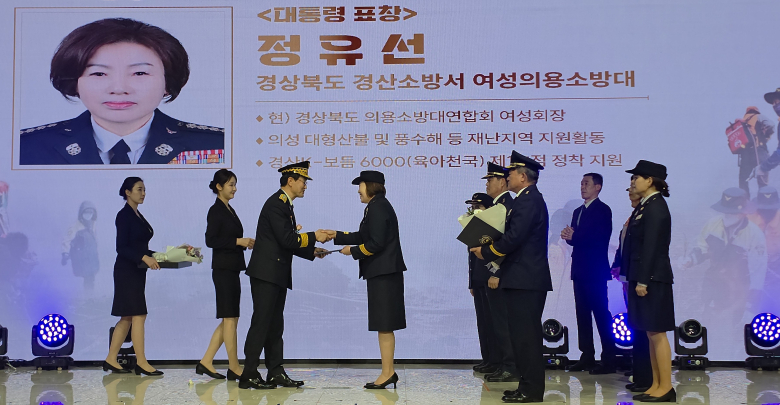 경상북도 여성의용소방대 연합회장이자 경산소방서 여성의용소방대 연합회장인 정유선 회장이 ‘제5주년 의용소방대의 날’ 기념행사에서 영예의 대통령 표창을 수상했다. 정유선 회장은 투철한 애향심과 탁월한 리더십을 바탕으로 의용소방대 조직 발전과 지역 사회 안전에 크게 기여한 공로를 인정받았다. 특히 200여 회가 넘는 화재 현장과 40여 회의 자연재난 현장에 출동해 도민의 생명과 재산을 지키는 데 앞장서 왔다. 지난 2025년 의성 산불 재난 당시 10일간 현장에 상주하며 이재민 구호에 힘썼으며, 2023년 예천 집중호우 복구 현장, 2024년 경산 진량읍 실종자 수색 등 대형 재난 상황마다 최일선으로 달려가 든든한 지원군 역할을 수행했다. 또한, 취약계층 화재 예방을 위한 기초소방시설 보급과 캠페인은 물론, 지역사회 가치 실현을 위한 다양한 봉사와 기부 활동도 높은 평가를 받았다. 경상북도 저출생 극복 성금 3,190만 원 기탁, 수해지역 이재민 성금 전달, 독거노인 돌봄 및 지역 인재 양성을 위한 장학금 기부 등 다방면에서 이웃 사랑을 실천해 오고 있다. 정유선 연합회장은 “이 뜻깊은 상은 재난 현장에서 묵묵히 땀 흘리며 헌신하는 모든 의용소방대원들을 대신해 받는 것이라 생각한다”며 “앞으로도 도민의 안전을 최우선으로 생각하며 지역사회에 희망을 전하는 봉사자가 되겠다”고 수상 소감을 밝혔다. 한창완 경산소방서장은 "정유선 회장의 남다른 희생정신과 봉사 활동은 지역사회와 소방 조직 전체에 큰 귀감이 되고 있다"며 축하의 인사를 전했다.