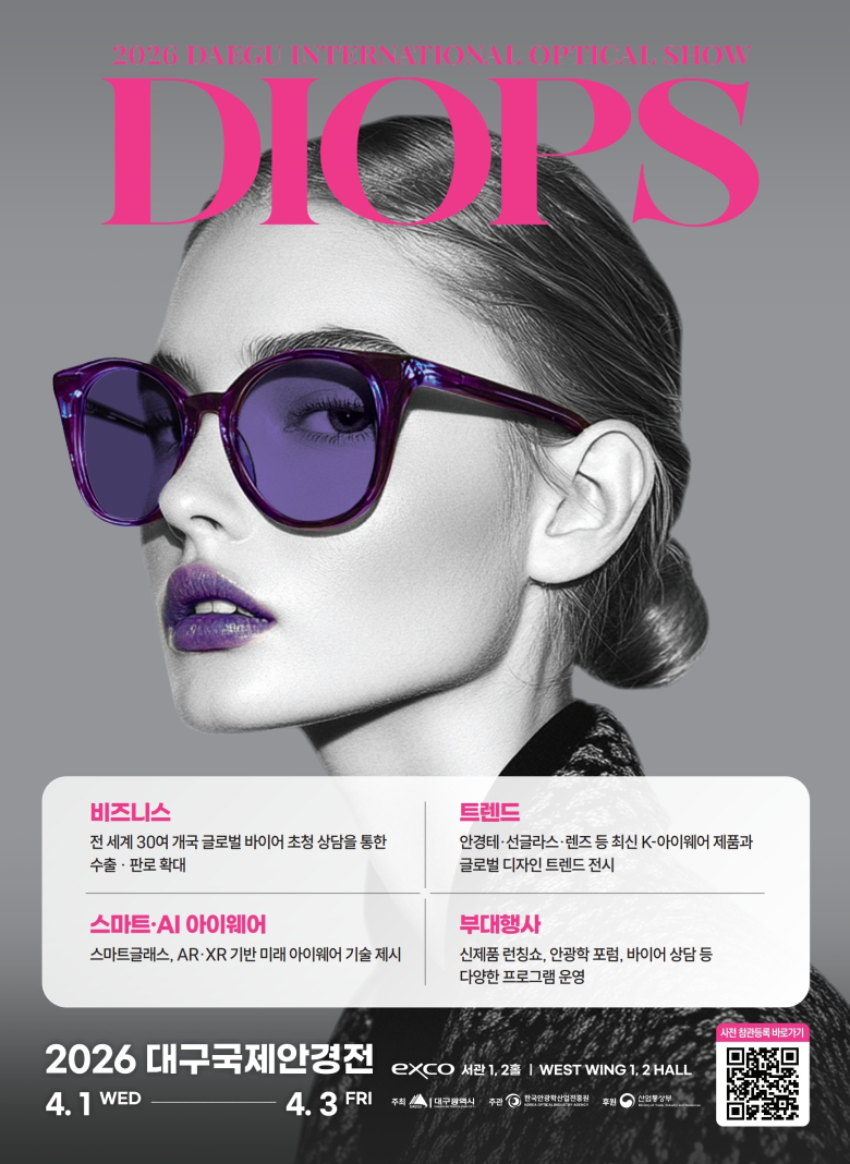 대구시는 오는 4월 1일부터 3일까지 사흘간 엑스코에서 개최되는 ‘2026 대구국제안경전(디옵스, DIOPS)’가 개막을 앞두고 막바지 준비에 들어갔다고 23일 밝혔다.이번 행사는 대구시가 주최하고 한국안광학산업진흥원이 주관하며 국내외 135여 개 기업이 참가해 안경테·선글라스부터 렌즈, 안광학 기기, 스마트 융합 제품에 이르기까지 안광학 산업의 최신 트렌드를 선보일 예정이다.특히 이번 전시는 대통령 착용 브랜드로 화제를 모은 ‘바이코즈’를 비롯한 ‘프랭크커스텀’, ‘블랙몬스터’, ‘나인어코드’ 등 국내 대표 아이웨어 브랜드가 다수 참여한다.이색적인 소통 프로그램으로 개막 첫날인 4월 1일 오후 4시 30분에는 ‘삼프로TV’, ‘장르만 여의도’ 등에서 활약 중인 시사·경제 유튜버 정영진 씨가 전시장을 찾는다. 전시장 내 설치된 ‘디옵스 미래관’도 애플 비전프로를 비롯한 국내외 대표 디바이스 14종을 통해 증강현실(AR)·가상현실(VR) 기반 스마트 융합 제품을 직접 체험할 수 있다. 단순 전시를 넘어 개발 공정과 최신 기술 트렌드를 함께 소개해 관람객들이 안광학 산업의 미래 청사진을 한눈에 파악할 수 있도록 돕는다.비즈니스 성과 창출을 위해 태국·베트남·대만 등 동남아시아와 튀르키예, 폴란드 등 한류 영향력이 높은 국가의 ‘빅바이어’를 엄선해 초청하고, 국내 대형 백화점 및 면세점 MD, 스마트글라스 분야 벤처투자사(VC)를 연계해 실질적인 계약 체결과 투자 유치로 이어질 수 있도록 지원한다.대구시는 이번 디옵스를 통해 K-아이웨어의 경쟁력을 알리고, 최근 한류 열풍과 함께 글로벌 패션 아이템으로 부상한 국산 브랜드의 위상을 공고히 한다는 계획이다.김정기 대구시장 권한대행 행정부시장은 “안경산업은 한류 열풍에 힘입은 K-아이웨어의 패션 아이템 부상과 스마트글라스 중심의 패러다임 전환이라는 중요한 변곡점”이라며 “디옵스가 우리 안경산업의 우수성을 세계에 알리고 글로벌 시장을 연결하는 가교 역할을 하도록 남은 기간 준비에 만전을 기하겠다”고 말했다.한편, 대구는 1946년 국내 최초 안경공장인 ‘국제셀룰로이드공업사’ 설립 이래 대한민국 안경 생산량의 70% 이상을 책임져 온 명실상부한 안경 산업의 메카다.