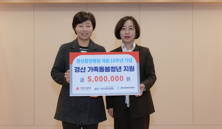 의료법인 근원의료재단 경산중앙병원(이사장 정민혜)은 개원 15주년을 맞아 최근 경산시 소재 가족돌봄청년에게 500만 원을 지원했다고 밝혔다. 이번 지원은 개원 15주년을 기념함과 동시에 지역사회로부터 받은 사랑은 다시금 지역의 어려운 이웃에게 환원해야 한다는 병원 설립자 근원 백승찬 이사장의 뜻을 기리기 위해 마련됐다. 지원금은 경상북도사회공동모금회 ‘착한일터’를 통해 임직원들이 매달 급여의 일부를 정기후원해 조성했으며 경상북도가정위탁지원센터에 전달돼 경산시 소재 가족돌봄청년 10명에게 사용될 예정이다. 정민혜 이사장은 “개원 15주년을 맞이함과 더불어 지역사회에 나눔을 실천할 수 있어 매우 뜻깊다”며 “이번 지원이 어려운 환경 속에서도 가족을 돌보는 청년들에게 작은 희망과 용기가 되길 바란다”고 말했다.
