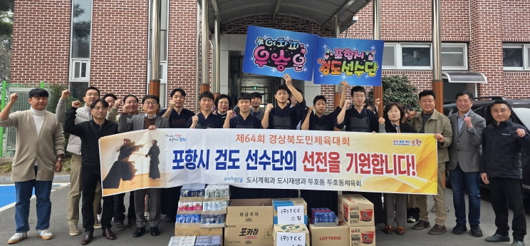 포항시 두호동은 ‘제64회 경북도민체육대회’를 앞두고 훈련 중인 검도 선수단을 찾아 격려했다고 25일 밝혔다.지난 24일 진행된 이번 방문에는 포항시 관계 부서와 두호동 체육회, 행정복지센터, 지역 기업 등이 참여한 검도 서포터즈단이 함께했다.서포터즈단은 훈련에 매진하고 있는 선수들에게 격려품을 전달하고, 훈련 여건과 지원 사항을 점검하며 사기 진작에 나섰다.주유미 두호동장은 “선수들이 포항을 대표한다는 자긍심으로 최선을 다해주길 바란다”며 “그동안의 노력이 좋은 결과로 이어지길 응원한다”고 말했다.한편 검도 종목 사전경기는 오는 27일부터 안동 다목적체육관에서 열릴 예정이다.